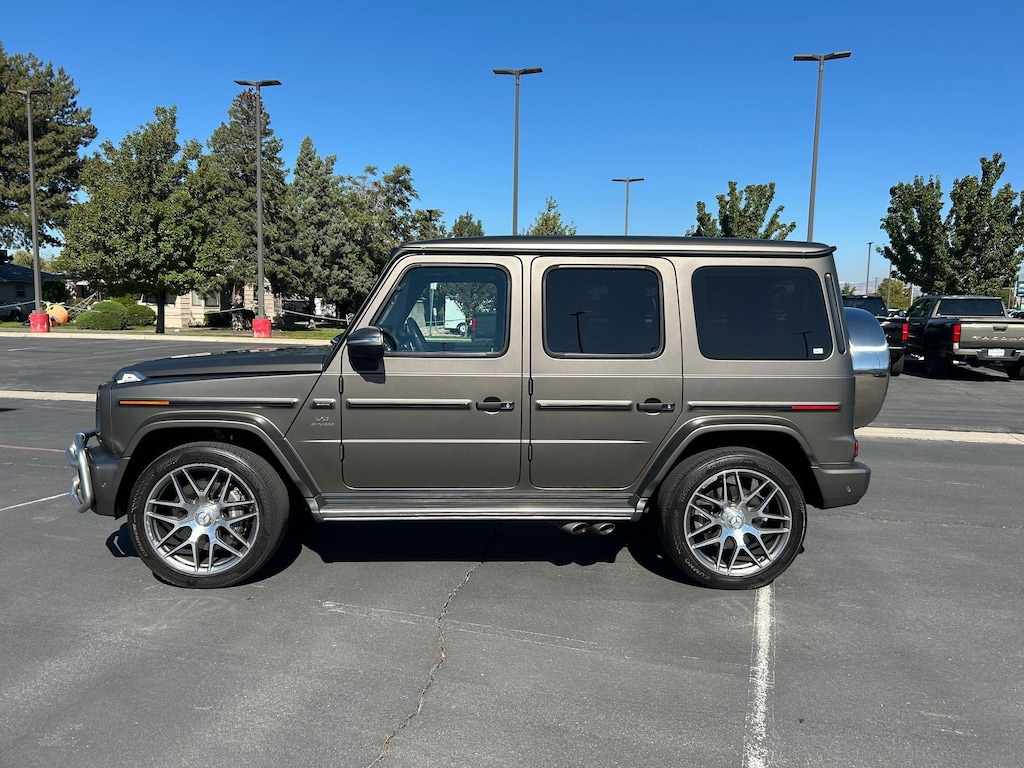 CARFAX One-Owner. Clean CARFAX. Champagne 2021 Mercedes-Benz G-Class G 63 AMG® 4MATIC® 4MATIC® 9-Speed Automatic V8 **FRESH TRADE**, **COMPLETE SERVICE AND INSPECTION JUST DONE**, **SUPER CLEAN**, **CLEAN CARFAX **, 15 Speakers, 4-Wheel Disc Brakes, ABS brakes, Adaptive suspension, Air Conditioning, AM/FM radio: SiriusXM, Android Auto®, Apple CarPlay®, Auto High-beam Headlights, Auto-dimming door mirrors, Automatic temperature control, Bodyside moldings, Brake assist, Burmester® Surround Sound System, Delay-off headlights, Electronic Stability Control, Free Map Data Updates for 3 Years, Front dual zone A/C, Head restraints memory, Headlight cleaning, Live Traffic Information, Memory seat, Navigation Services, Navigation System, Panic alarm, Power adjustable front head restraints, Power driver seat, Power moonroof, Power steering, Power windows, Radio data system, Radio: COMAND® Online Navigation, Rear air conditioning, Rear anti-roll bar, Rear fog lights, Rear side impact airbag, Rear window defroster, Remote keyless entry, Security system, SiriusXM Satellite Radio, Speed control, Speed-sensing steering, Steering wheel memory, Steering wheel mounted audio controls, Traction control.